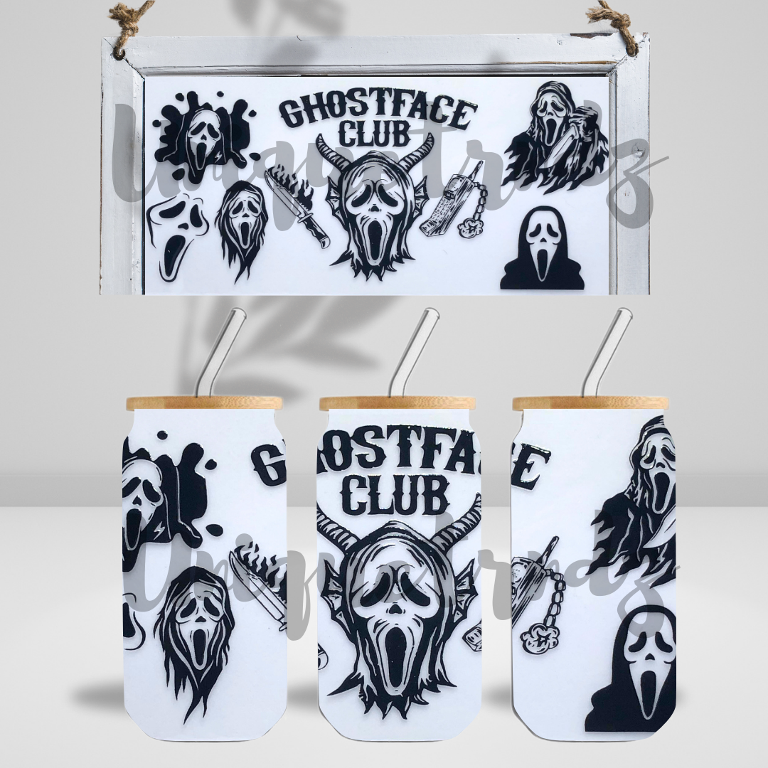 Horror Movie Ghost Killer Club 16oz Glass Cup